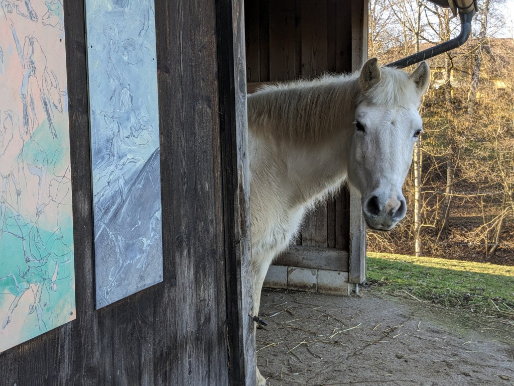 Wir erleben eine Stunde mit dem Schimmel Sophia: Mähne striegeln, striegeln des Felles, Beobachten fphren am Strick. Evtl. dürfen wir draufsitzen und eine Runde Reiten,je nach Absprache. Für Max 2 Schüler.