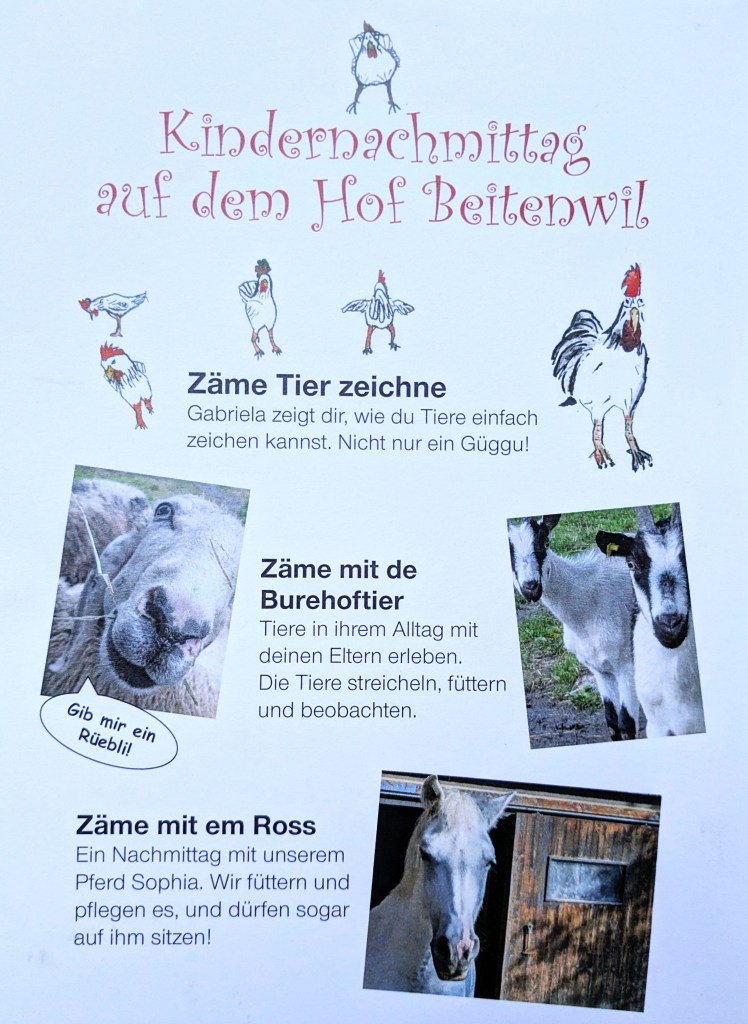 Auf Voranmeldung können Sie Einzeln, als Familie, in der Kleingruppe oder als Klasse bei uns die Tiere beobachten, zeichnen oder einfach bei ihnen sein. Preis machen wir gemeinsam je nach dem Inhalt ab. Maximal 2 Stunden.